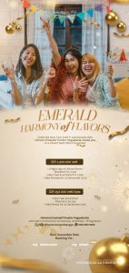 Memasuki pergantian tahun, hotel bintang empat ini kembali menawarkan program Tahun Baru 2026 bertema “Emerald Harmony of Flavors.” Melalui New Year Room Package seharga Rp1.300.000 per malam yang berlaku pada 31 Desember 2025, tamu dapat menikmati satu malam menginap di kamar Deluxe, sarapan untuk dua orang, serta New Year’s Eve Dinner untuk dua orang.
