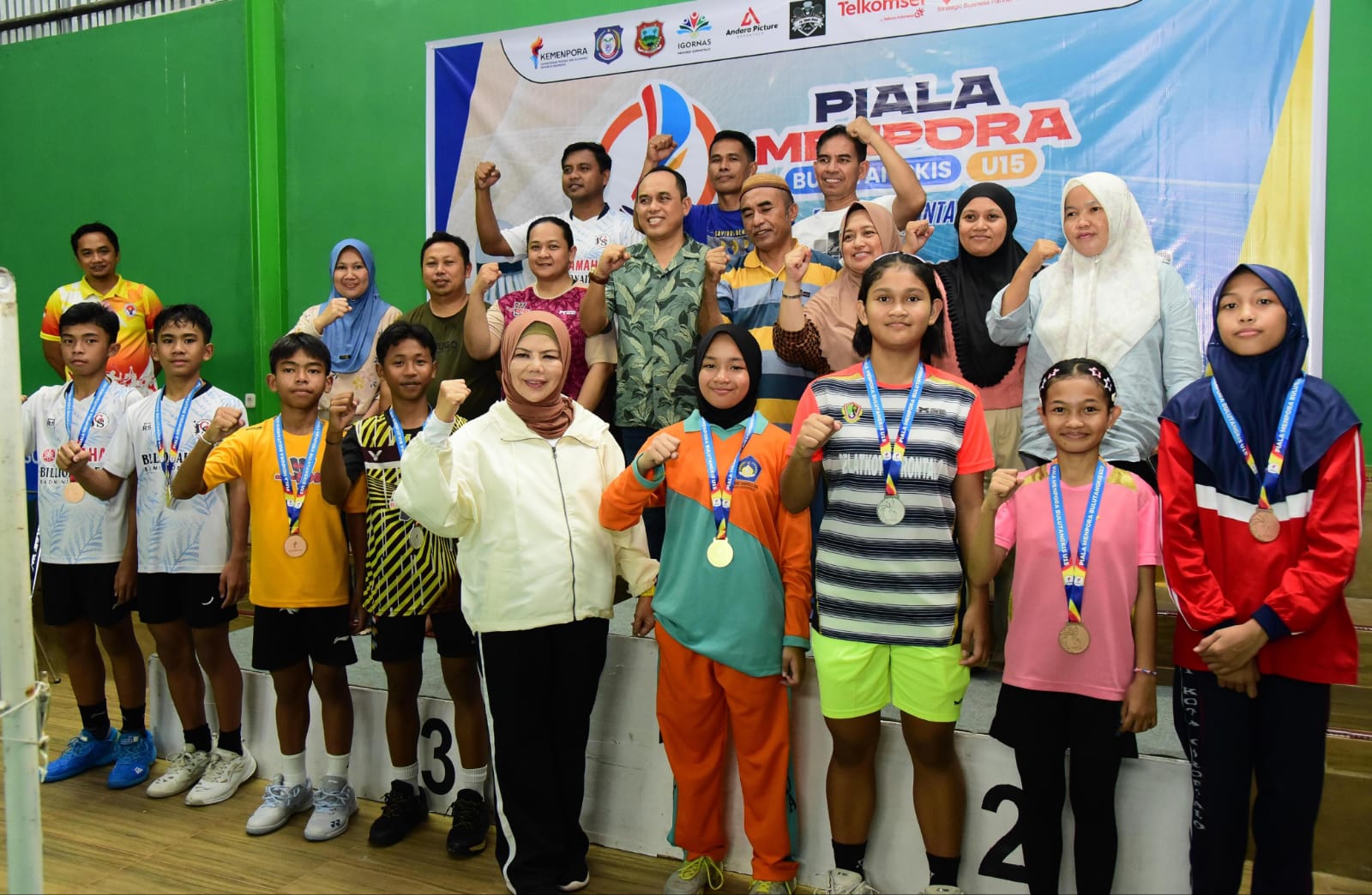 Wakil Gubernur Gorontalo Idah Syahidah memberikan apresiasi kepada atlet muda bulu tangkis U-15 pada ajang Piala Menpora Regional Gorontalo. Ia menegaskan pentingnya dukungan orang tua dan berharap prestasi anak-anak ini berlanjut hingga ke panggung nasional.
